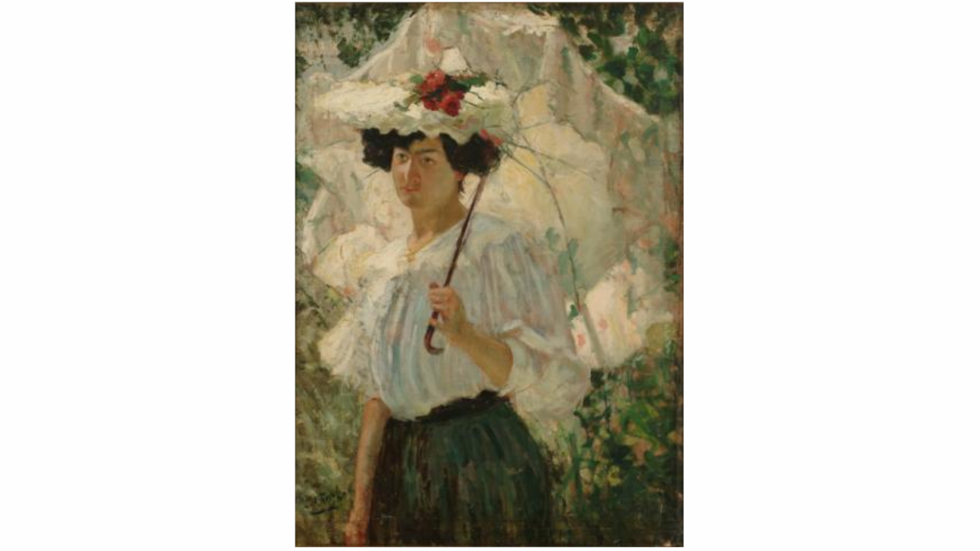 Dama del quitasol, N° 100-107, registro Surdoc, perteneciente a la colección de la Pinacoteca de Concepción